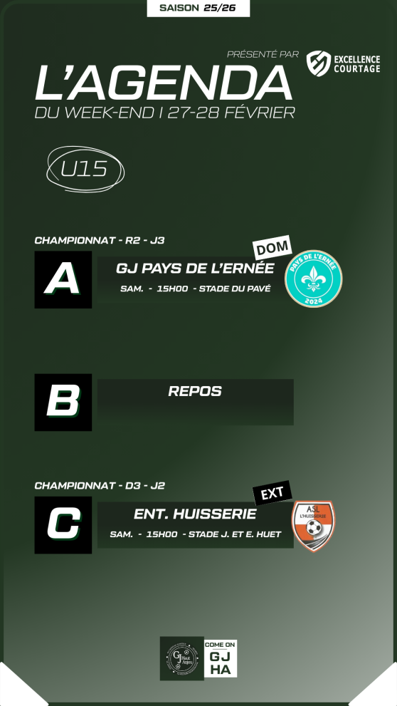 Les U15 R2 et U17 A seront au Pavé à 15h et 17h samedi après-midi !