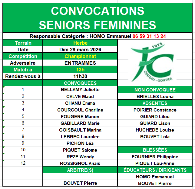 Convocations SENIOR FEMININES FCCG